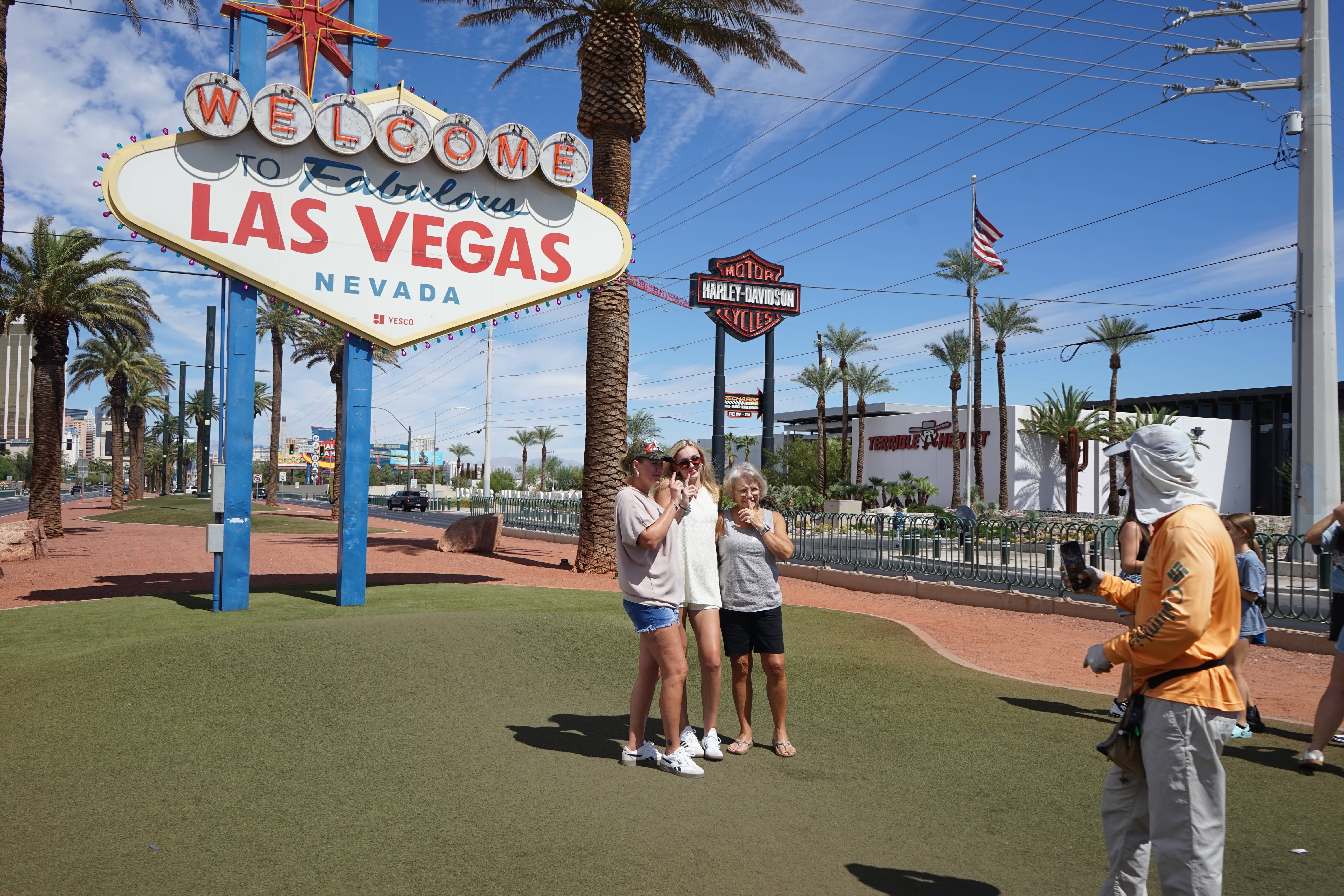 9月10日,在美国拉斯维加斯,游客在“欢迎来到拉斯维加斯”的标志牌下留影。新华社发(曾慧摄)拉斯维加斯会议与游客管理局官员上月在董事会上表示,关税是导致这个“娱乐之都”国际游客数量下降的重要因素。管理局主席史蒂夫·希尔指出,受关税等政策影响,来自加拿大的游客数同比减少了20%。