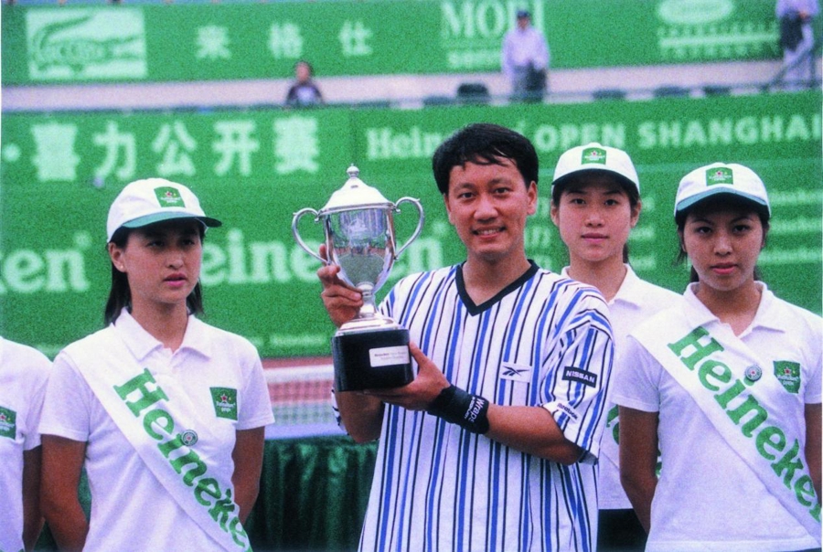 张德培在仙霞网球中心捧起冠军奖杯